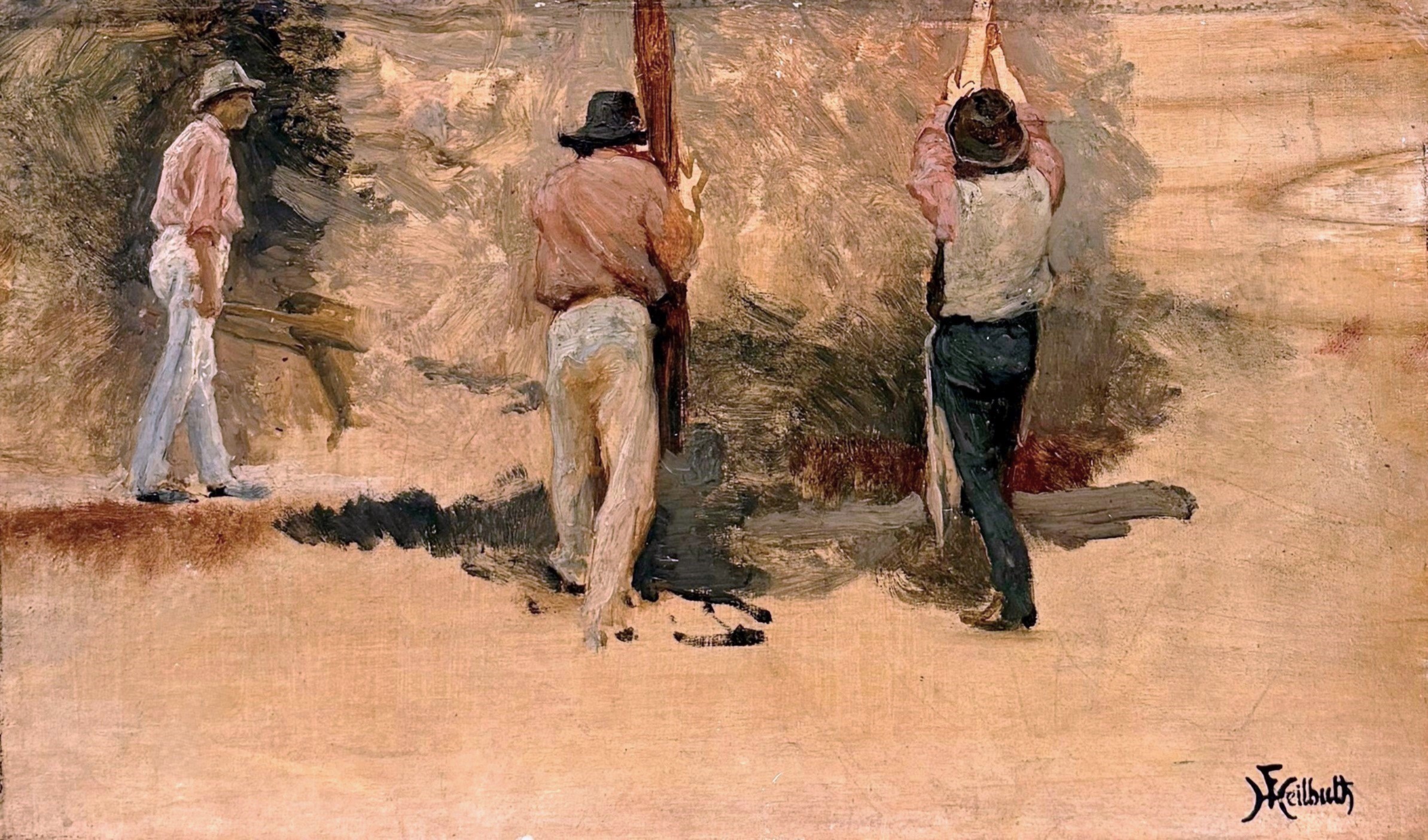 Les Fouilles est un tableau illustrant des travaux archéologiques réalisés en 1872 à Rome ; Heilbuth en réalisa plusieurs versions, à l’huile et à l’aquarelle, vers 1880. Notre peinture est l’une des seize études concernant cette composition qui étaient proposées à la vente de l’atelier.