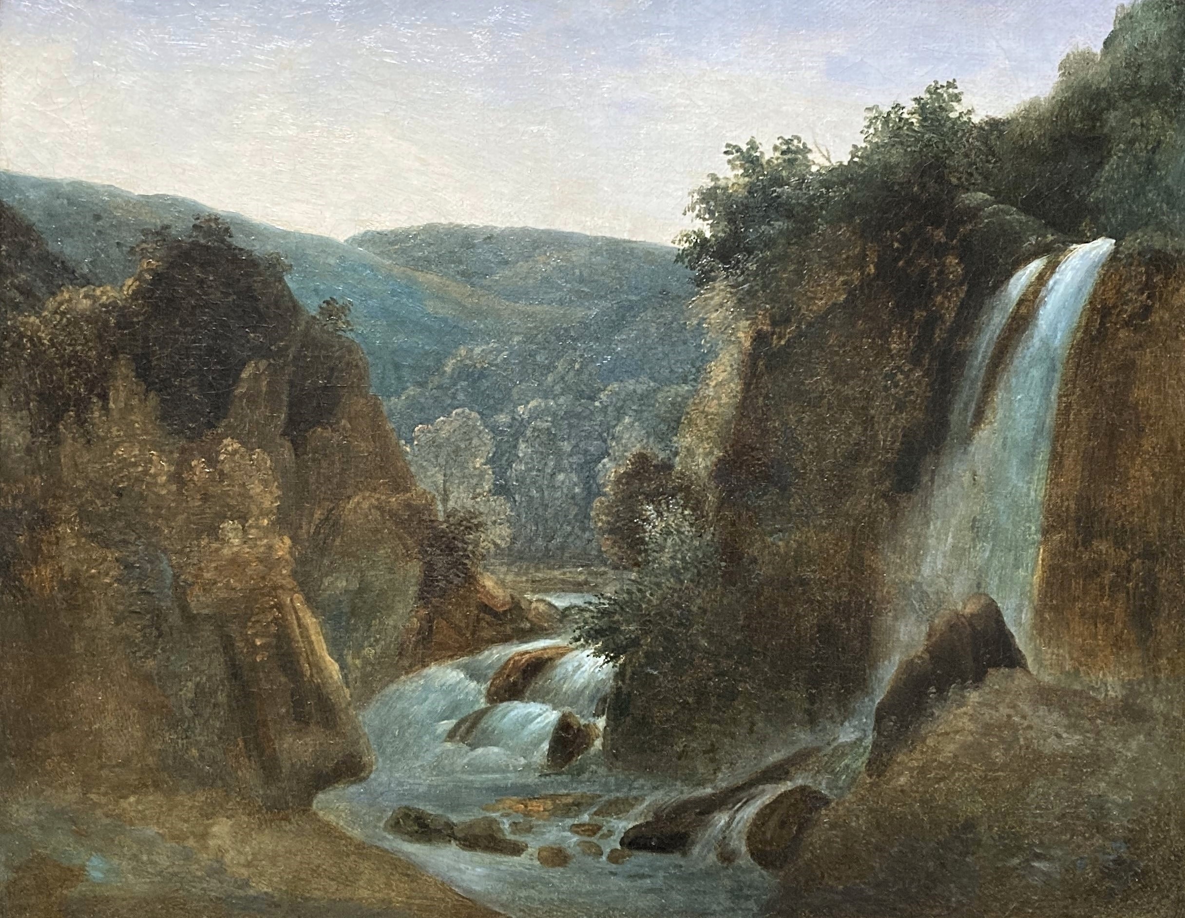 Si certaines œuvres datées attestent que Coignet se trouve en Italie en 1826 et 1827 (il y retournera par ailleurs entre 1840 et 1843), la chronologie du premier séjour demeure incertaine ; sa participation au concours du Grand Prix de Rome de paysage historique en 1821, ainsi que celle au Salon de 1824, sembleraient indiquer des interruptions durant ce séjour. D’autres œuvres datées permettent bien d’affirmer sa présence en Italie (ainsi qu’en Suisse et dans le Dauphiné) au moins en 1822 et 1823, ce que confirment les sujets de ses tableaux présentés au Salon de 1824 ; plus particulièrement, il y expose sous le numéro 341 une Vue des cascatelles de Tivoli, dont la composition a toutes les chances d’être identique à notre peinture, mais de dimensions un peu plus importantes.